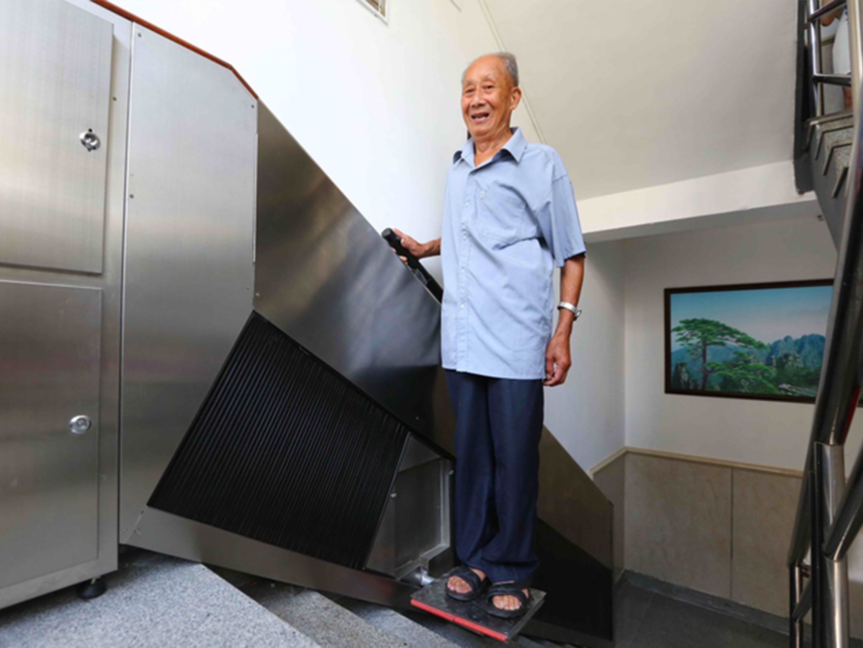 輕輕按一下按鈕,一塊踏板自動(dòng)放下,人站在上面,按動(dòng)開關(guān)就能輕松地“拾階而上”……8月3日上午,...